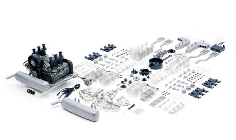 Well, not a drop of glue is needed to assemble Franzis’ Porsche Flat-Six Engine Scale Model Kit. All you need is one screwdriver — the one that comes with the scale model kit to use on the included screws to put the kit together.