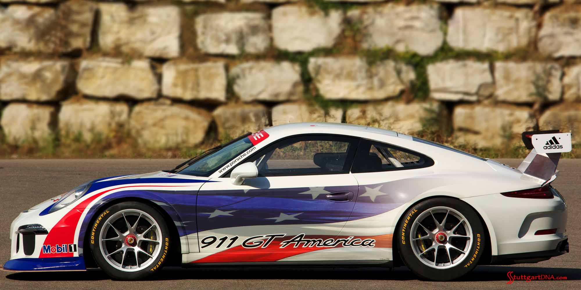 The 911 GT America features a Porsche flat-six 4.0 liter racing engine which will produce 470 hp and utilizes a six-speed sequential gearbox with pneumatic paddle shift system and electronic throttle. The car is based on the Porsche 911 GT3 Cup racer that currently exclusively runs in the Porsche Supercup series, and features lightweight bodywork with aluminum-steel composite construction, a fuel safety cell with new quick-fill connection, new color Cosworth dash display, and new safety equipment including a rescue opening in the roof allow use of the KED system for driver stabilization.