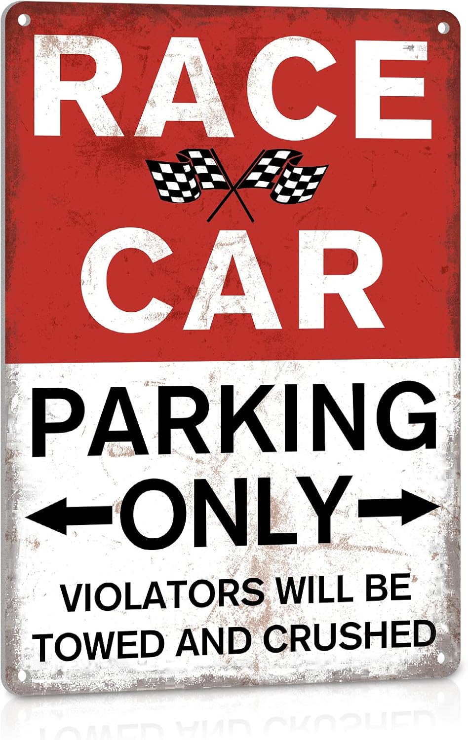 Other great locations for displaying your “Race Car Parking Only” sign are your backyard, game room, basement or bar.