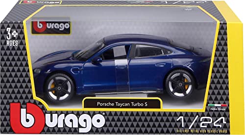 The Bburago 18-21098B Blue Porsche Taycan Turbo S 1:24-Scale Model is an officially licensed product.