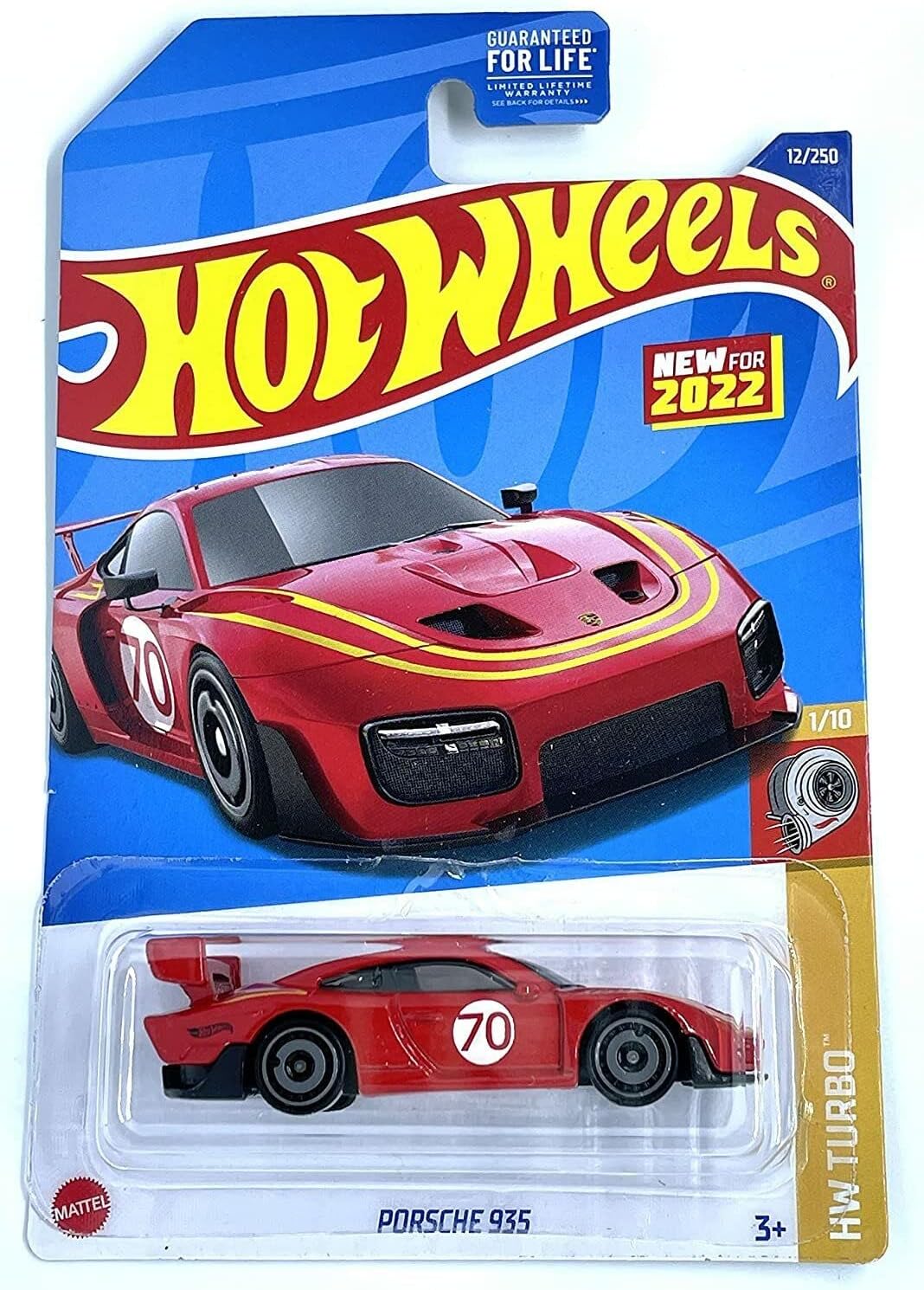 This Hot Wheels Red Porsche 935 HW Turbo 1/10 2022 12/250 is available as a 1:64-scale diecast model for your child to play with or for your collection.