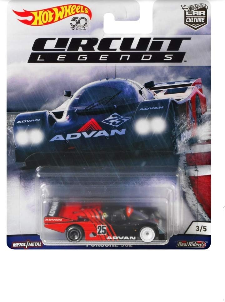 This Hot Wheels Advan Porsche 962 Real Riders 3/5 CAR Culture Circuit Legends is available as a 1:64-scale diecast model for your child to play with or for your collection.