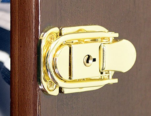 This display cabinet features a black-felt background, complete with brass hinges, door latches, installed lockable latches and installed brackets for wall hanging. Includes mounting hardware.
