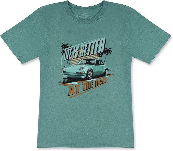 “Life is Better at The Track” Porsche 911 Men’s Vintage T-Shirt (Heather Surf Green)
