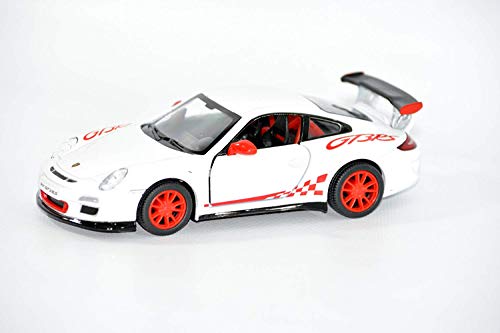 The 2010 Porsche 911 GT3 RS 1:36-Scale White Diecast Model Toy Sports Car, from Kinsmart, is an officially licensed product.